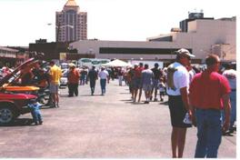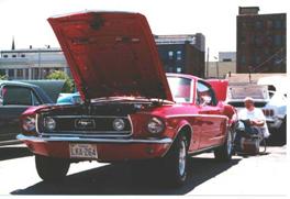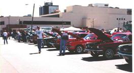 The show was located at “The Transportation Museum of Virginia” in downtown Roanoke. After setting up my Cobra. I looked up the president of The Roanoke Valley Mustang Club and introduced myself. I told her about our show in September and that I was going to pass out fliers. I went around the show and talked to the participants and invited them to our show. I hope many of them will come. I gave the Roanoke Valley Mustang Club the left over fliers. They also announced over the PA that our show was being held in September and that they had fliers at the tent.