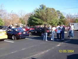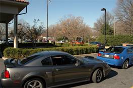 After we finished chowing down went out into the parking lot and low and behold what did they find? A 2005 Mustang GT parked close to our Mustangs. The owners of the 2005 Mustang GT were checking out our cars and the club was checking out their New Mustang GT. I think all of us were impressed. I hope we were able to recruit another proud CVMC member.